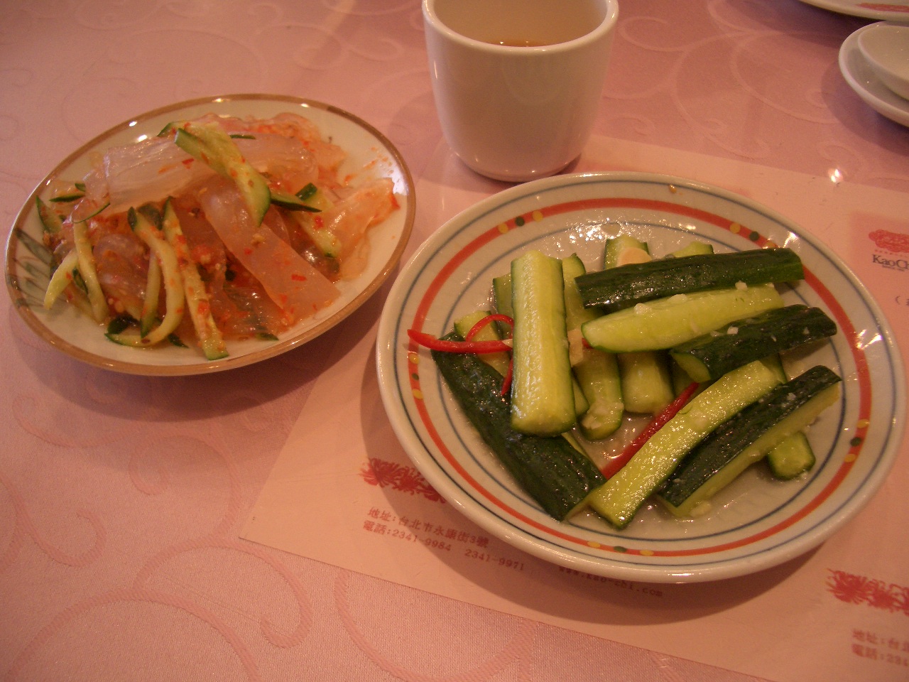 一盤是小黃瓜 另一盤是涼拌寬河粉(?名字不確定)吧