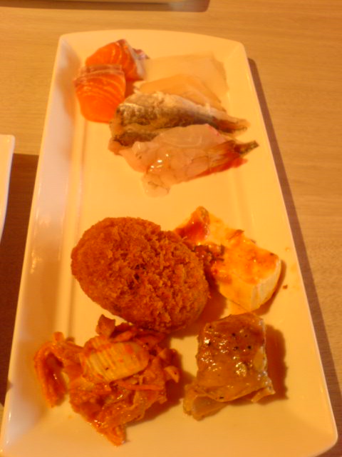 一開始 我們就拿了很多生魚片跟喜歡的熟食 他的生魚片很新鮮