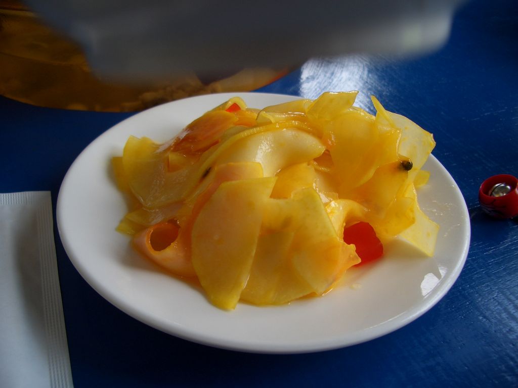 青木瓜淋百香果醬,超級開胃的,後來邊吃主菜我還邊把開胃菜吃掉。