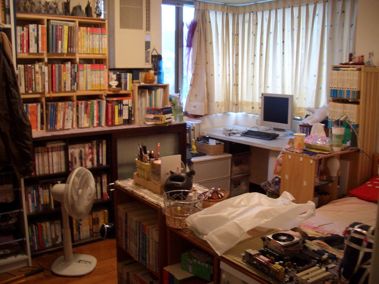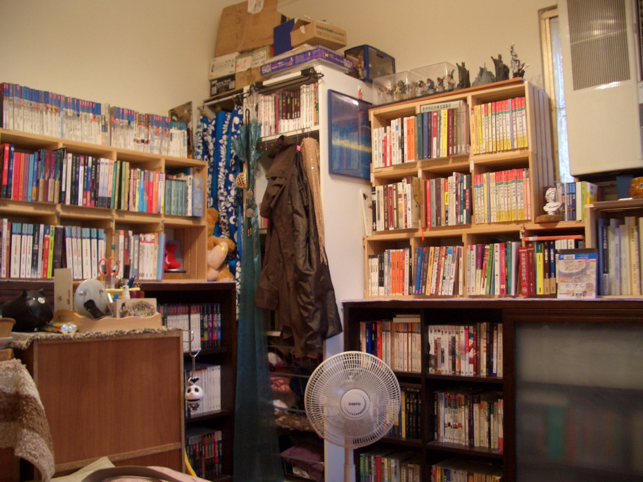 牆上掛滿了充滿個性的吊飾,還有各式各樣的娃娃與飾品,但不難發現最多的還是書籍,而且這只不過是小小的一角,那些書可都是雙層的,翻開後還有一層書,據月的說法,他不時的還會大搬風一下。