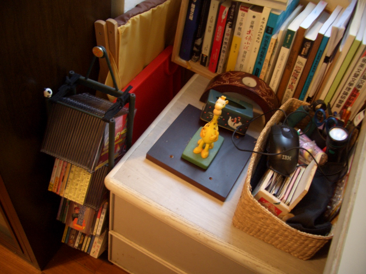 好了我胡說八道完了,這是栞在讀書會的專欄第一篇,也就是月姑娘家的探索之旅,專欄名稱取名為《夾上書籤の扉頁》,其實是跟我的暱稱有點關係的,(不知道的再問我吧XD)。拜月姑娘請我幫他組電腦所賜,有幸走進她的香閨,欣賞羨煞我的書櫃,喜歡看書的人總是會有書放不下的疑慮,雖然月姑娘擁有著自己的宮殿,但是只增不減的書籍總是會有放滿的一天,人總是要有捨才有得,但又總是割捨不下。