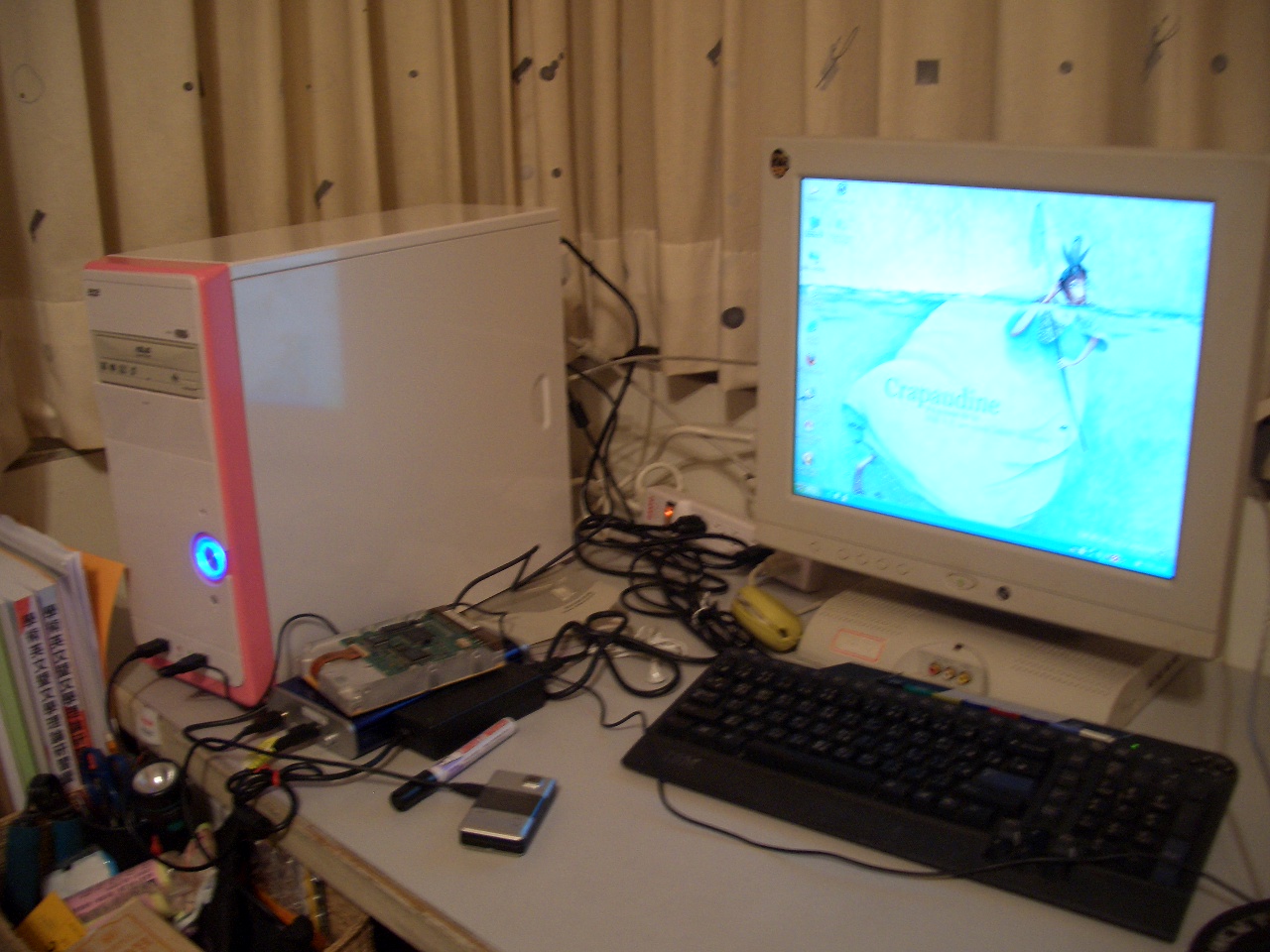 最後當然要附上此行最主要的目的,那就是我帶月去組的電腦,夢幻般的粉紅色加上藍色的power燈,是不是很符合月亮上浪漫皎潔的氣氛呢?雖然我還是對那一大落的書籍比較有興趣啦XD