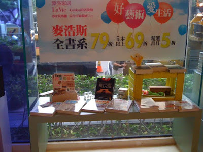 大概是因為第一次負責陳列的關係,超緊張的,好幾天前就跟幫忙的同事討論著要用些甚麼素材。不過因為書量太多,占滿整桌,其實也做不了太多的變化,只好作成上面這個樣子。我很喜歡用Box組出來的階梯感,那個粉紅色小屋是前公司同事的喜餅盒子,這一桌都是五折,有興趣又知道我在哪裡上班的可以來買唷!:D