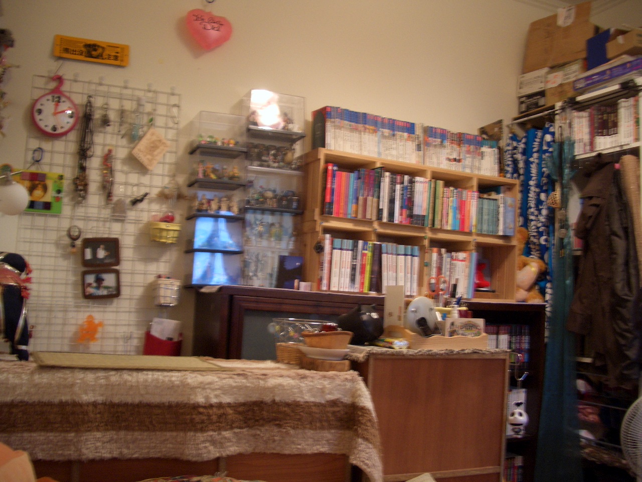 牆上掛滿了充滿個性的吊飾,還有各式各樣的娃娃與飾品,但不難發現最多的還是書籍,而且這只不過是小小的一角,那些書可都是雙層的,翻開後還有一層書,據月的說法,他不時的還會大搬風一下。
